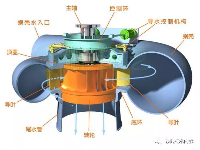 水輪發(fā)電機(jī)之結(jié)構(gòu)及安裝方法決定于水輪機(jī)之型式。根據(jù)水力資源開(kāi)發(fā)的情況,水輪機(jī)選用三種型式之一:沖擊式、軸流輻流式或旋漿式。第一種用于高水頭設(shè)備,第二種用于中等水頭,而旋漿式用于利用的水流對(duì)水平面落差小的情況。